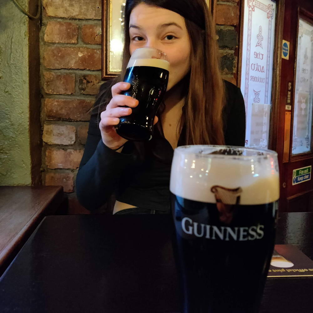 - Sinds een bezoek aan Dublin is ze fan van Guinness, en die drinkt ze het liefst in een gezellige Irish pub.